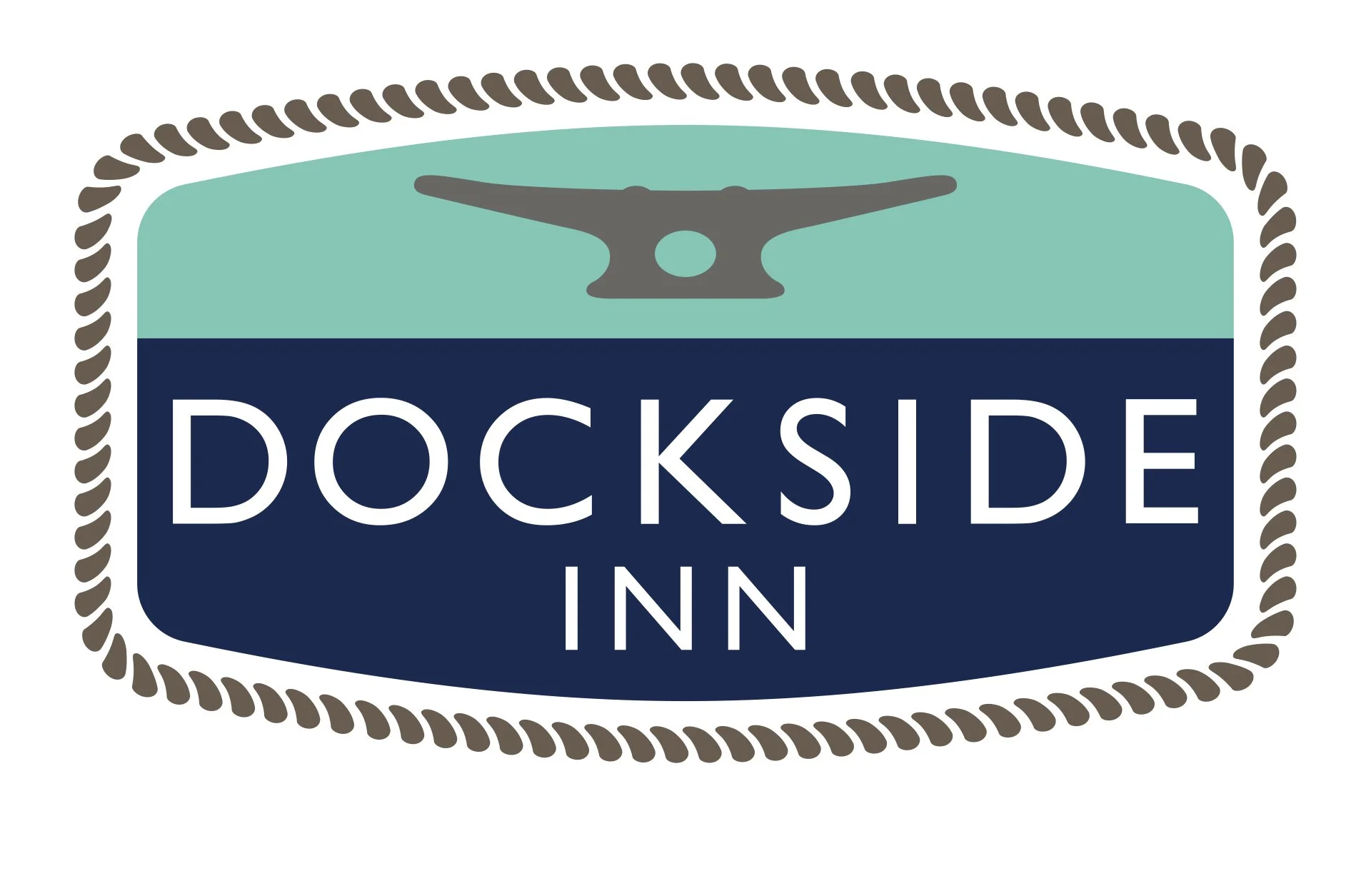 The process started with multiple logo designs, and John instantly fell in love with this version of what we had sent over to him. Instead of a traditional bird, wooden dock, or sunset for dockside imagery, we decided to use the cleat as the focal point of the logo and surround the overall logo with rope to finish off the nautical theme. We finalized the logo with two tones of blue and a touch of white. This new logo is now a familiar brand to many as the Dockside Inn has become an award-winning hotel and a tourist favorite on Martha’s Vineyard.